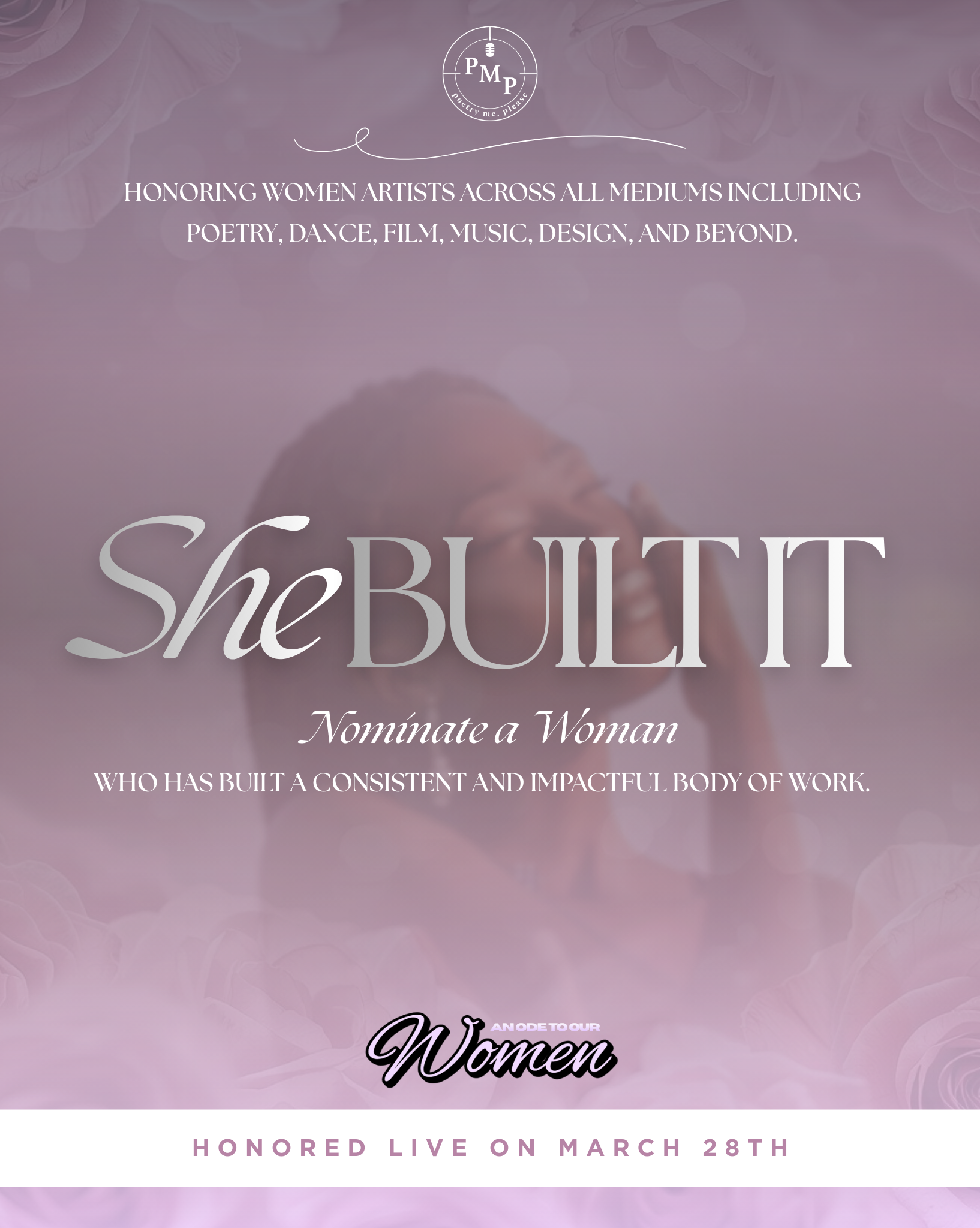 As part of An Ode To Our Women, we are recognizing artists across all mediums including poets, dancers, producers, choreographers, filmmakers, visual artists, musicians, designers, actors and multidisciplinary creatives.